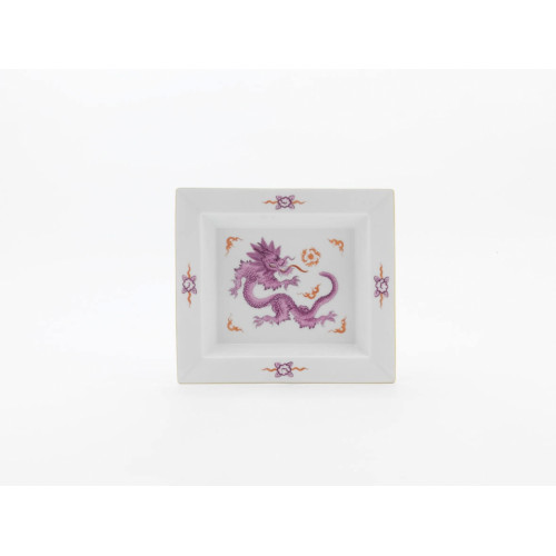 Vide-poche groß, Ming-Drache, reich, purpur, ohne Kante, Goldrand, 21 x 18,5 cm