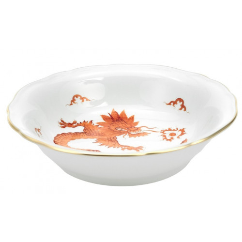 Dessertschale, Form "Neuer Ausschnitt", Ming-Drache, reich, rot, ohne Kante, Goldrand, L 14,5 cm