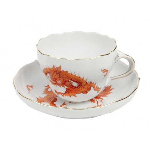Kaffeetasse m.U., Form "Neuer Ausschnitt", Ming-Drache, reich, rot, ohne Kante, Goldrand, V 0,20 l