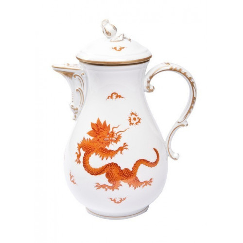 Kaffeekanne, Form "Neuer Ausschnitt", Ming-Drache, reich, rot, ohne Kante, Goldrand, V 1,20 l