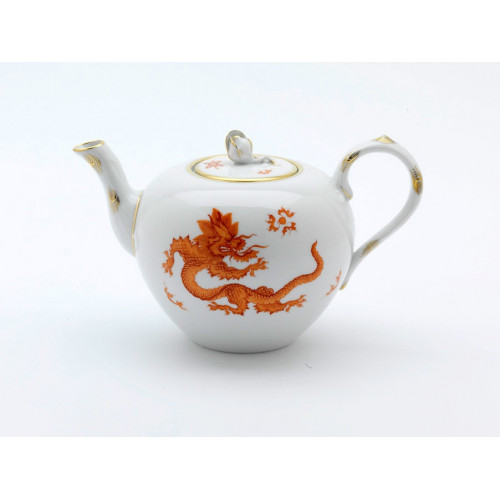 Teekanne, Ming-Drache, reich, rot, ohne Kante, Goldrand, V 0,55 l