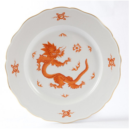 Teller m.H. (o.M. 00479), Ming-Drache, reich, rot, ohne Kante, Goldrand, ø 28 cm