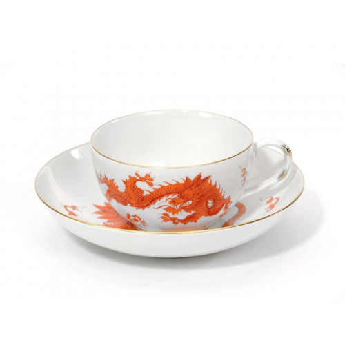 Milchkaffeetasse, Form "Glatte Form", Ming-Drache, reich, rot, ohne Kante, Goldrand, H 10 cm