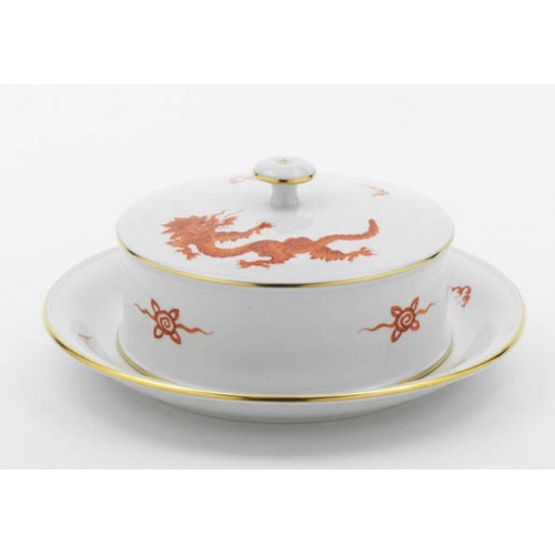 Käsedose, Ming-Drache, reich, rot, ohne Kante, Goldrand, 10,5 cm