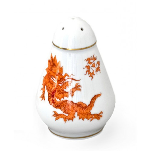 Salzstreuer, Form "Neuer Ausschnitt", Ming-Drache, reich, rot, ohne Kante, Goldrand, H 7 cm