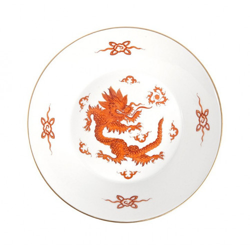 Untertasse zu 55830, Ming-Drache, reich, rot, ohne Kante, Goldrand