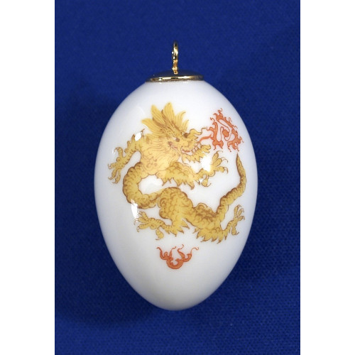 Miniatur-Ei, Ming-Drache, reich, gelb, ohne Kante, weißer Rand, H 4,5 cm