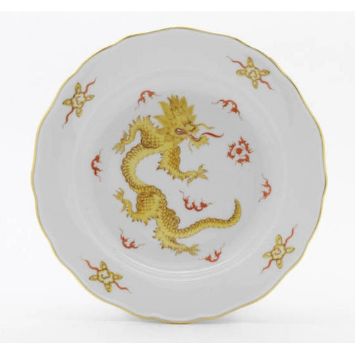 Teller, Ming-Drache, reich, gelb, ohne Kante, Goldrand, ø 20 cm