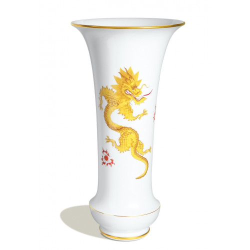 Vase, Ming-Drache, reich, gelb, ohne Kante, Goldrand, H 41 cm