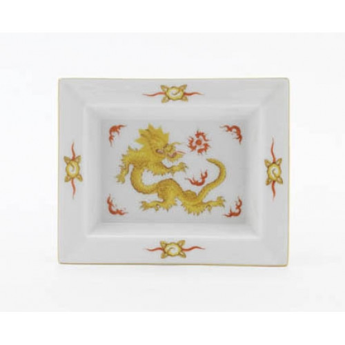 Vide-poche klein, Ming-Drache, reich, gelb, ohne Kante, Goldrand, 12,3 x 10 cm