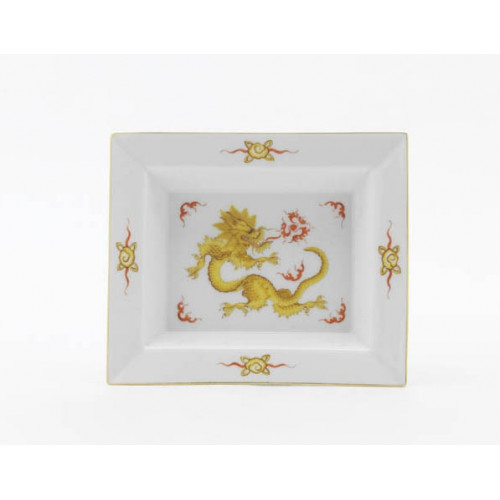 Vide-poche mittel, Ming-Drache, reich, gelb, ohne Kante, Goldrand, 16 x 13,5 cm