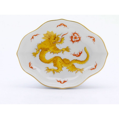 Schälchen, Ming-Drache, reich, gelb, ohne Kante, Goldrand, L 12 cm