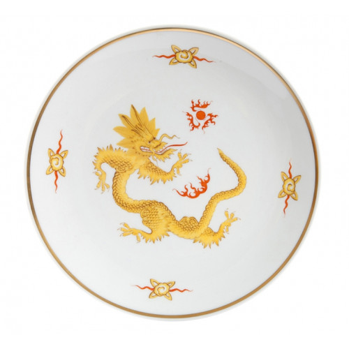 Wandschale, Ming-Drache, reich, gelb, ohne Kante, Goldfaden bzw. Goldreifen,