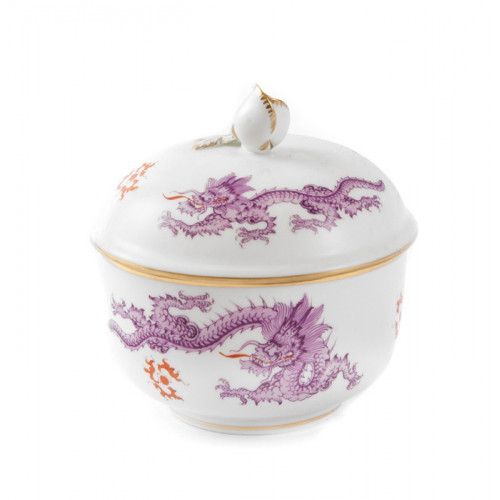 Zuckerdose, Ming-Drache, reich, lila, ohne Kante, Goldrand, Ø 9 cm