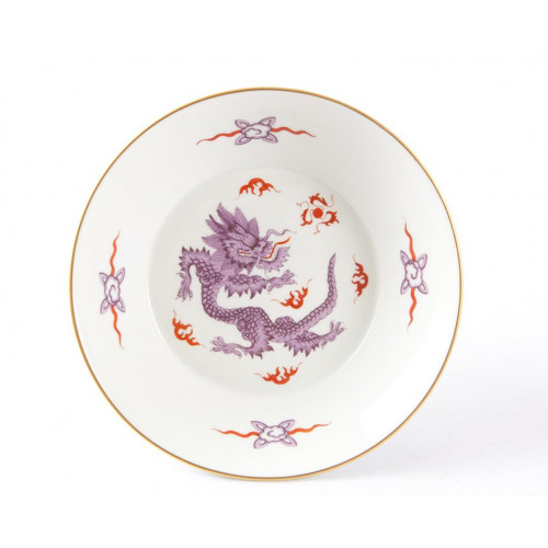Untertasse zu 55830, Ming-Drache, reich, lila, ohne Kante, Goldrand