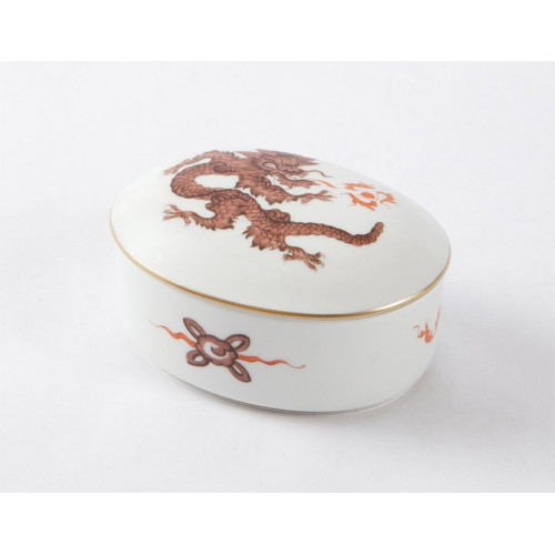Dose, Ming-Drache, reich, braun, ohne Kante, Goldrand, 8x6 cm