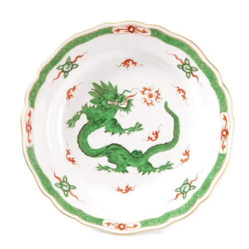 Teller m.H. (o.M. 00501), Ming-Drache, reich, grün, mit Kante, Goldrand, ø 18 cm