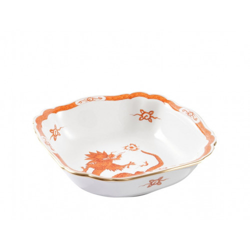 Schüssel, eckig, Ming-Drache, reich, rot, mit Kante, Goldrand, L 26 cm