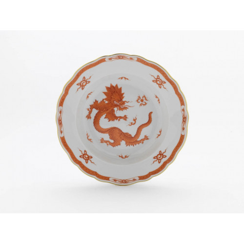 Suppenteller, Ming-Drache, reich, rot, mit Kante, Goldrand, ø 24 cm