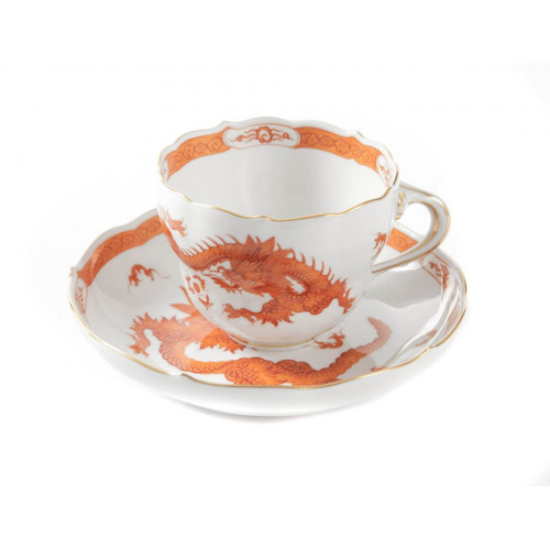 Espressotasse m.U., Ming-Drache, reich, rot, mit Kante, Goldrand, V 0,1 l