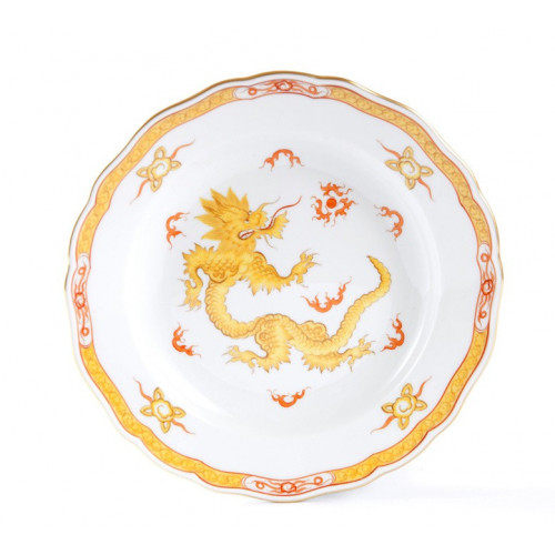 Teller, Ming-Drache, reich, gelb, mit Kante, Goldrand, ø 20 cm