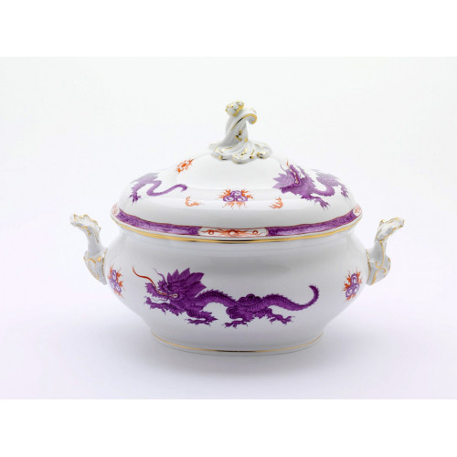 Terrine, oval mit Schnörkel, Form "Neuer Ausschnitt", Ming-Drache, reich, lila, mit Kante, Goldrand, V 2,50 l