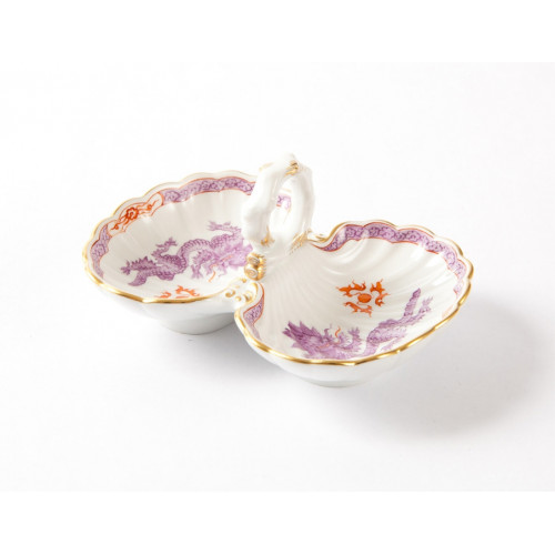 Salzgefäß, Form "Neuer Ausschnitt", Ming-Drache, reich, lila, mit Kante, Goldrand, L 11,5 cm