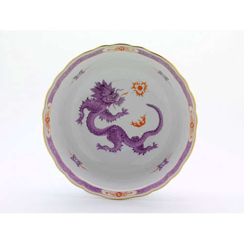 Schüssel, rund, Form "Neuer Ausschnitt", Ming-Drache, reich, lila, mit Kante, Goldrand, ø 27 cm