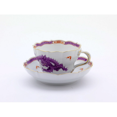 Kaffeetasse m.U., Form "Neuer Ausschnitt", Ming-Drache, reich, lila, mit Kante, Goldrand, V 0,30 l
