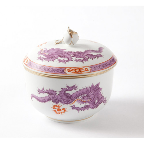 Zuckerdose, Ming-Drache, reich, lila, mit Kante, Goldrand, ø 10 cm