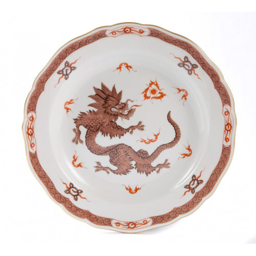 Teller, Form "Neuer Ausschnitt", Ming-Drache, reich, braun, mit Kante, Goldrand, ø 22 cm