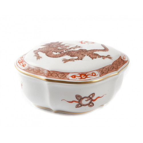 Dose, Ming-Drache, reich, braun, mit Kante, Goldrand, L 9,5 cm