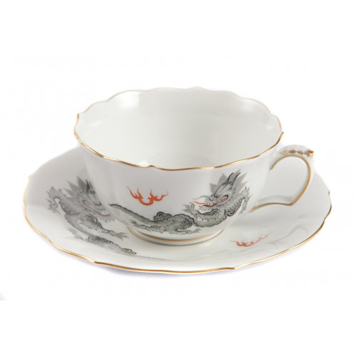 Teetasse m.U., Ming-Drache, leicht, schwarz, ohne Kante, Goldrand, V 0,20 l