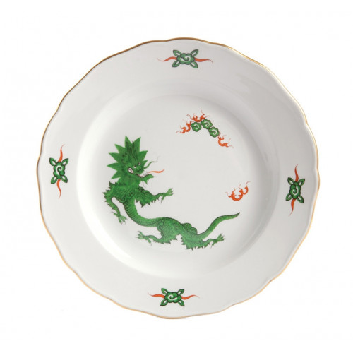 Teller m.H., Ming-Drache, leicht, grün, ohne Kante, Goldrand, ø 25 cm