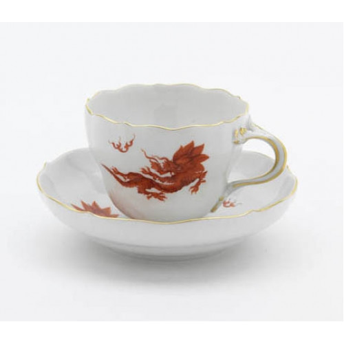 Kaffeetasse m.U., Ming-Drache, leicht, rot, ohne Kante, Goldrand, V 0,20 l
