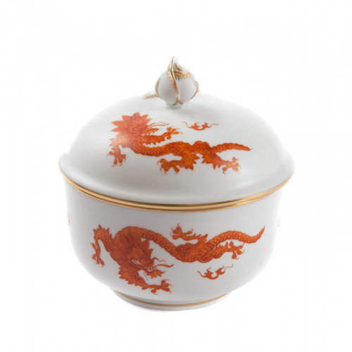 Zuckerdose, Ming-Drache, leicht, rot, ohne Kante, Goldrand, Ø 9 cm