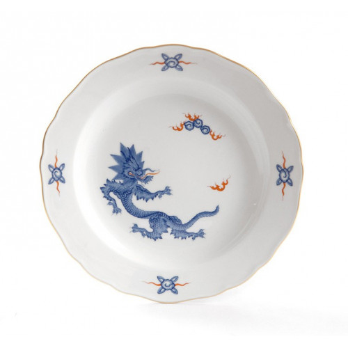 Teller, Ming-Drache, leicht, kobaltblau, ohne Kante, Goldrand, ø 22 cm