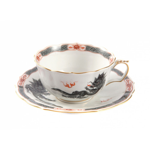 Teetasse m.U., Form "Neuer Ausschnitt", Ming-Drache, leicht, schwarz, mit Kante, Goldrand, V 0,20 l