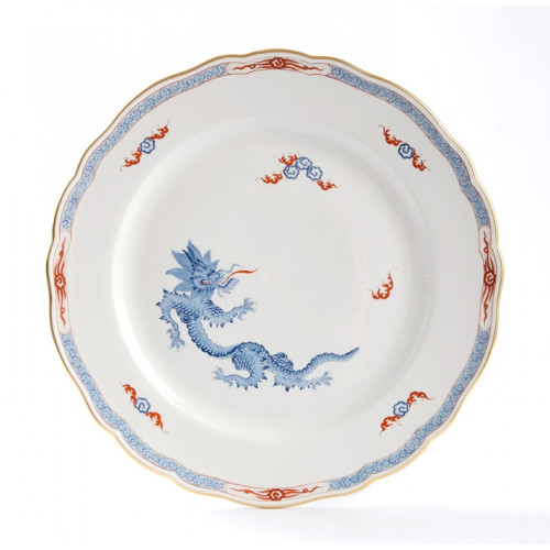 Platzteller, Form "Neuer Ausschnitt", Ming-Drache, leicht, hellblau, mit Kante, Goldrand, ø 32 cm