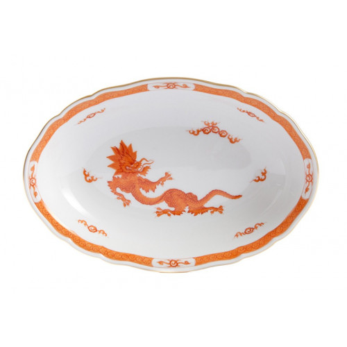 Beilageschale oval, Ming-Drache, leicht, rot, mit Kante, Goldrand, L 25 cm