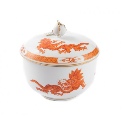 Zuckerdose, Ming-Drache, leicht, rot, mit Kante, Goldrand, ø 10 cm