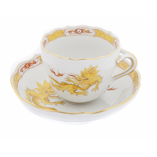 Espressotasse m.U., Form "Neuer Ausschnitt", Ming-Drache, leicht, gelb, mit Kante, Goldrand, V 0,1 l