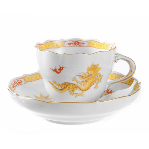Kaffeetasse m.U., Ming-Drache, leicht, gelb, mit Kante, Goldrand, V 0,20 l
