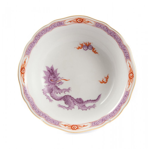Dessertschale, Form "Neuer Ausschnitt", Ming-Drache, leicht, lila, mit Kante, Goldrand, L 14,5 cm