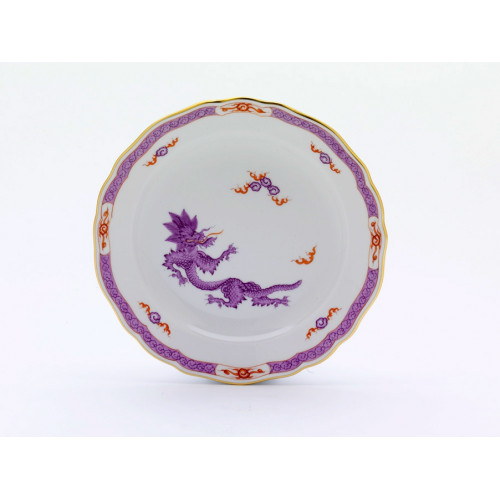 Teller, Form "Neuer Ausschnitt", Ming-Drache, leicht, lila, mit Kante, Goldrand, ø 18 cm