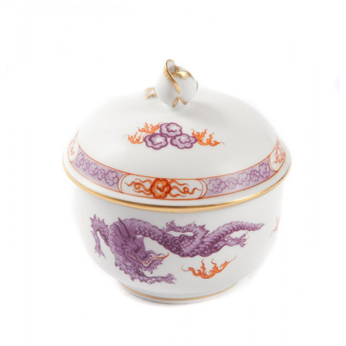 Zuckerdose, Ming-Drache, leicht, lila, mit Kante, Goldrand, ø 7,5 cm