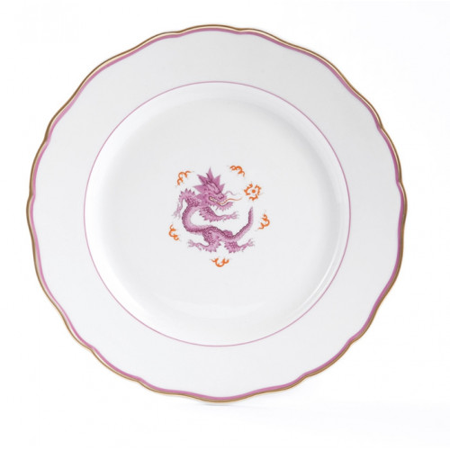 Speiseteller, Form "Neuer Ausschnitt", Ming-Drache, purpur, ohne Kante, purpur Faden, Goldfaden, ø 28 cm