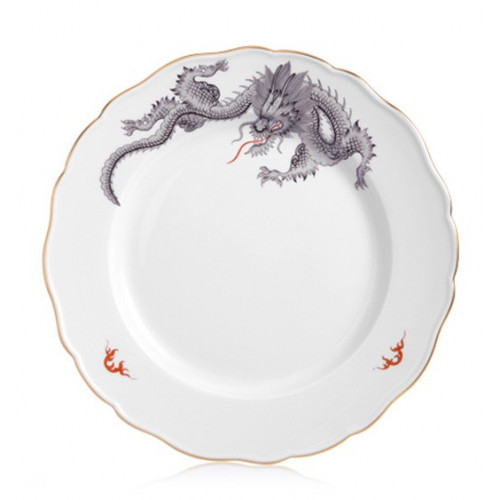 Speiseteller, Ming-Drache Style, schwarz, Goldrand, ø 28 cm