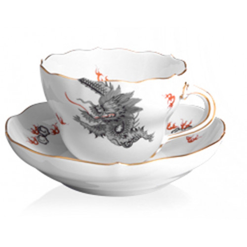 Kaffeetasse m.U., Ming-Drache Style, schwarz, Goldrand, V 0,25 l