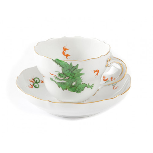Kaffeetasse m.U., Ming-Drache Style, grün, Goldrand, V 0,25 l